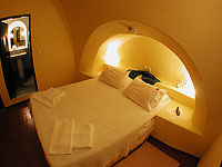 Again, the nature... The nature gave to the ancient Santorinians their houses. Caves, basically, simply adapted and equipped with the minimum needed in order to be hospitable. Plastic lines, curves intercrossing under vaulted ceilings, soft lights and essential decor.