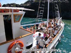 Hot springs is called a location at Palia Kameni (old burnt), one of the two volcanic islands in the middle of Santorini Caldera. The water there has a temperature of about 33 Celcius and it contains sulfur that is good for the skin.
