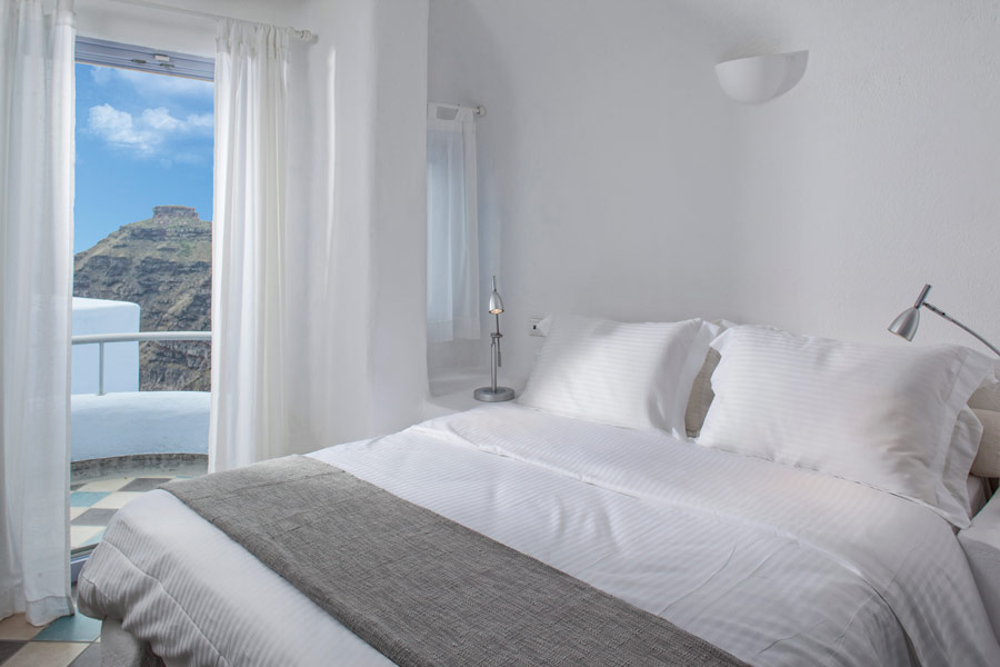Rosaki is a maisonette suitable for 2 persons. It consists of a sitting area, kitchen, bathroom and a loft bedroom with double bed. The Suite has a private balcony with magnificent caldera view. Rosaki Suite is tastefully decorated with fine pieces of art and furnishing.