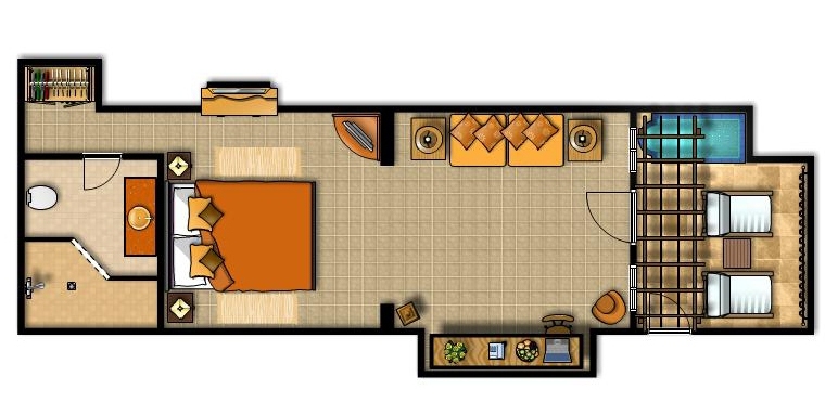 Lose yourself in the charm of the bronze color and experience a unique feeling as you enter this elegant suite. Spend relaxing hours in the spacious living room, and spoil yourself in your private outdoor heated Jacuzzi. Enjoy the endless iridescence of the golden and bronze mosaics in the bathroom and the charming decoration of the Old World. Located in the lower level of the complex, Charm Suite has the air of a monseigneur and promises to offer you the ultimate charm and romance.