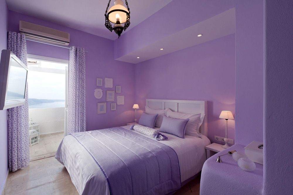 1-3 pax, bedroom with double bed, sofa bed, lounge area, bathroom with shower, private furnished balcony with caldera views