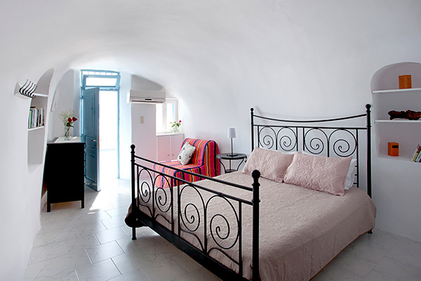 This is a unique accommodation proposal. Nested within the historical heart of Oia's village, the cave apt. is built within the volcanic rock according to the traditional island's architecture which is adapted to Santorini's unique morphological, climate and historical particularities. The room is ideal for honeymooners and for those who imagine some very special moments in Santorini. It features a bedroom with one queen bed and bathroom with shower. It also features a comfortable private veranda with superb views of the Caldera gulf, volcano, Oia village, Thirasia island, and Scaros.