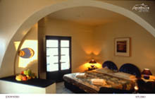 Imagine a spacious studio for two to four persons. Some have beds on the loft, others have four posted beds, and all of them have private balconies and are privileged with sensational volcano and sunset view.