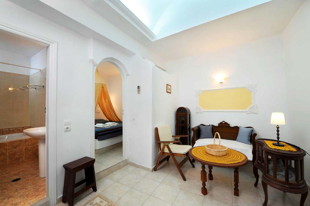 One bedroom, separate living room, bathroom with shower, veranda with view of the Caldera and the volcano