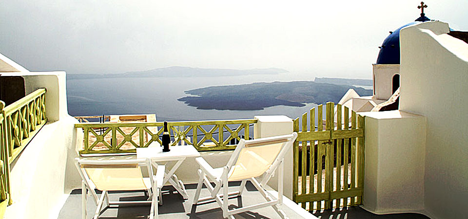 It has a breathtaking view to the Caldera, the Volcano, the Aegean Sea and the villages of Imerovigli and Akrotiri. It is ideal for Honeymoon couples, but can also accommodate a group of 4 friends.