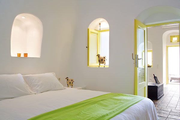 Your mind relaxes as you sit on your terrace taking in the panoramic view of the kaleidoscope of sunset colors reflecting in the Caldera and the Aegean Sea. Complete the day by relaxing in the hot water of your private outdoor Jacuzzi watching the stars and the unique Santorinian moon. The sofa beds in the seating area of Orfeas Suite can be converted into two extra beds for the night.