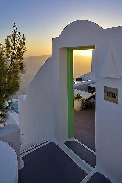 Cool off in your Private Infinity Swimming Pool with its water jets soothing your muscles as you enjoy the view of the Caldera, the sea, and the spectacular sunset. Treat yourself as a royalty by lying into your private outdoor heated jacuzzi while watching the spectacular sunset. For your further comfort the suite has a sofa bed, a kitchenette, a cave bathroom decorated in the colors of the sea, together with a queen size bed bedroom. The sofa bed in the seating area of Armonia Suite can be converted into an extra bed for the night.