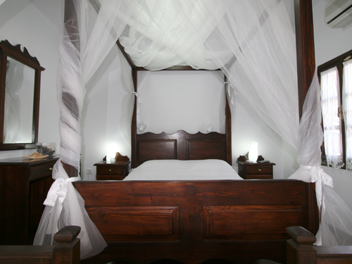 The 2 guests Studio consisting of one large room with one traditional canopied double bed.